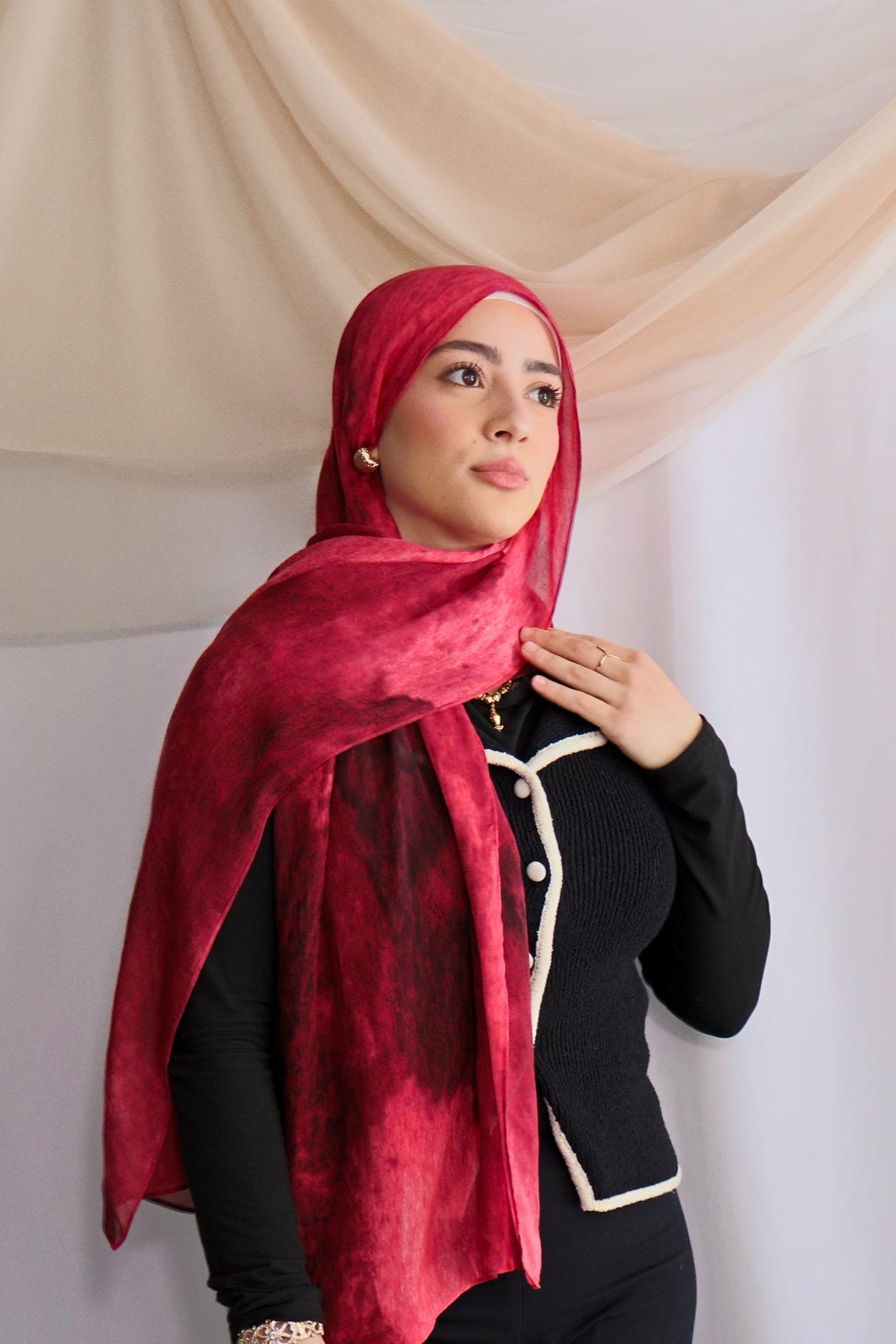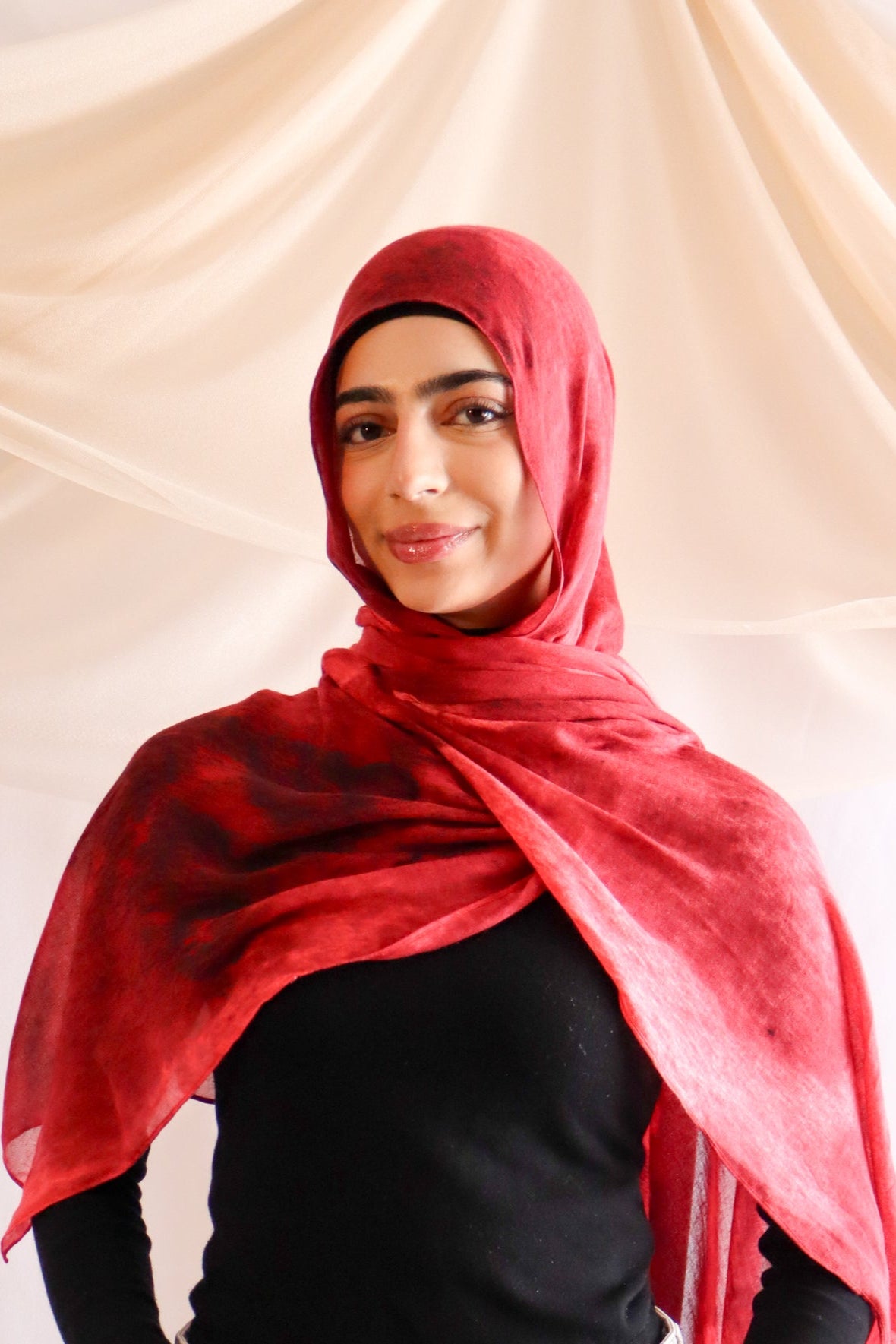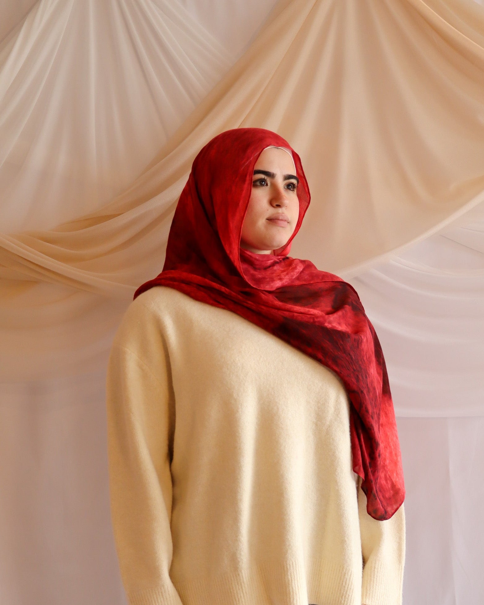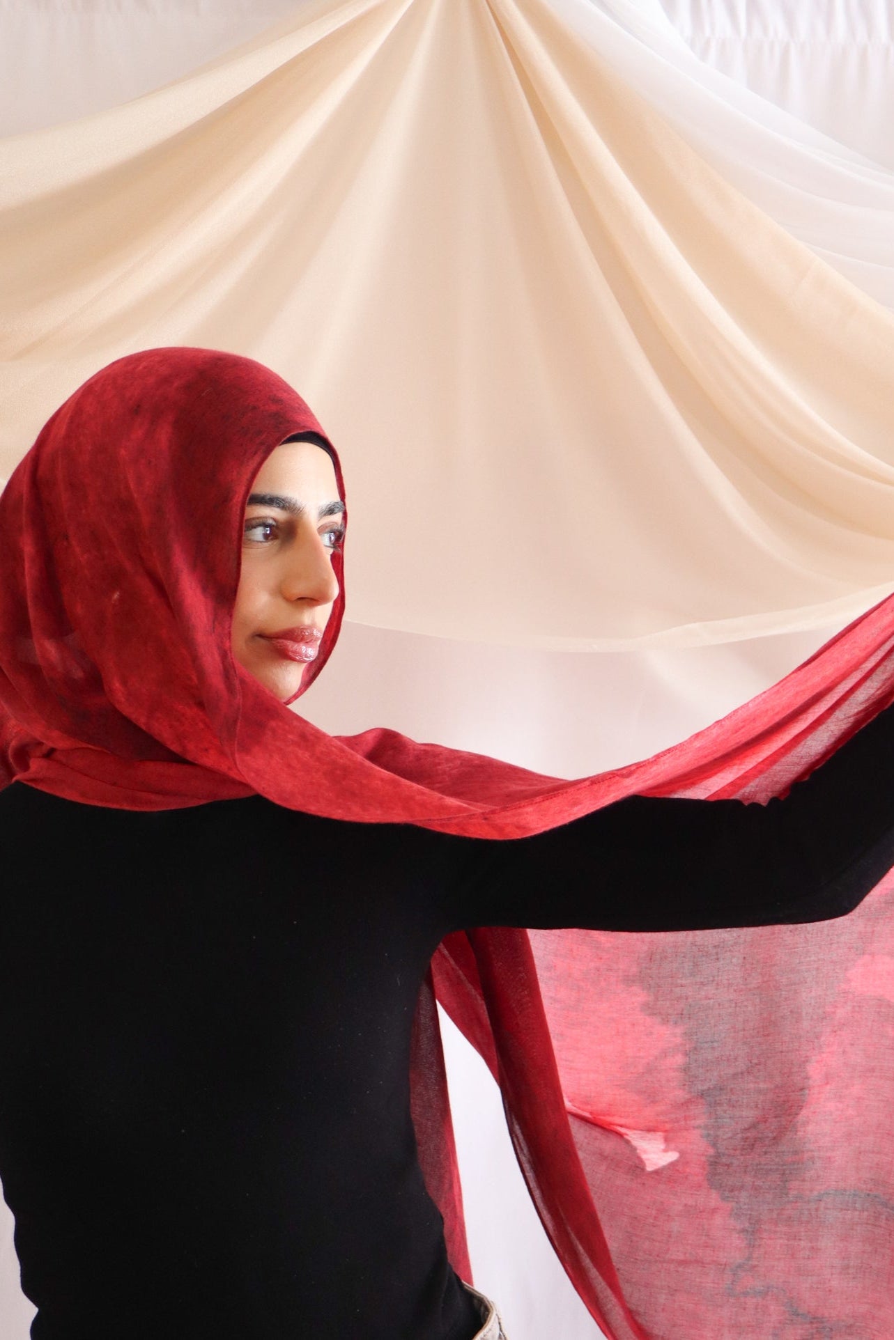 The Hanina scarf is a celebration of Beit Hanina's enduring strength and spirit. The deep burgundy and dark red hues mirror the warmth of its people and the land, with a richness that evokes the city’s role as a center of Palestinian culture and heritage. Beit Hanina, is a place where tradition and modernity come together in harmony. The bold, striking tones of this scarf reflect the resilience of its people, whose hearts remain rooted in their homeland. Wear this scarf as a tribute to the warmth, unity, and pride that defines Beit Hanina, a city that continues to flourish despite its challenges.