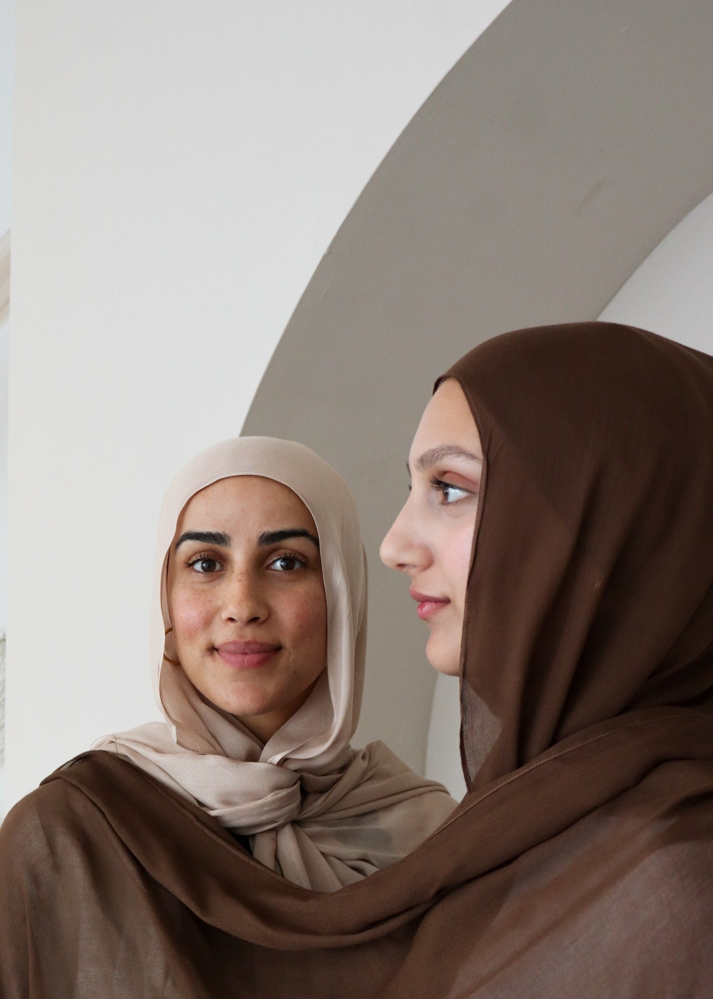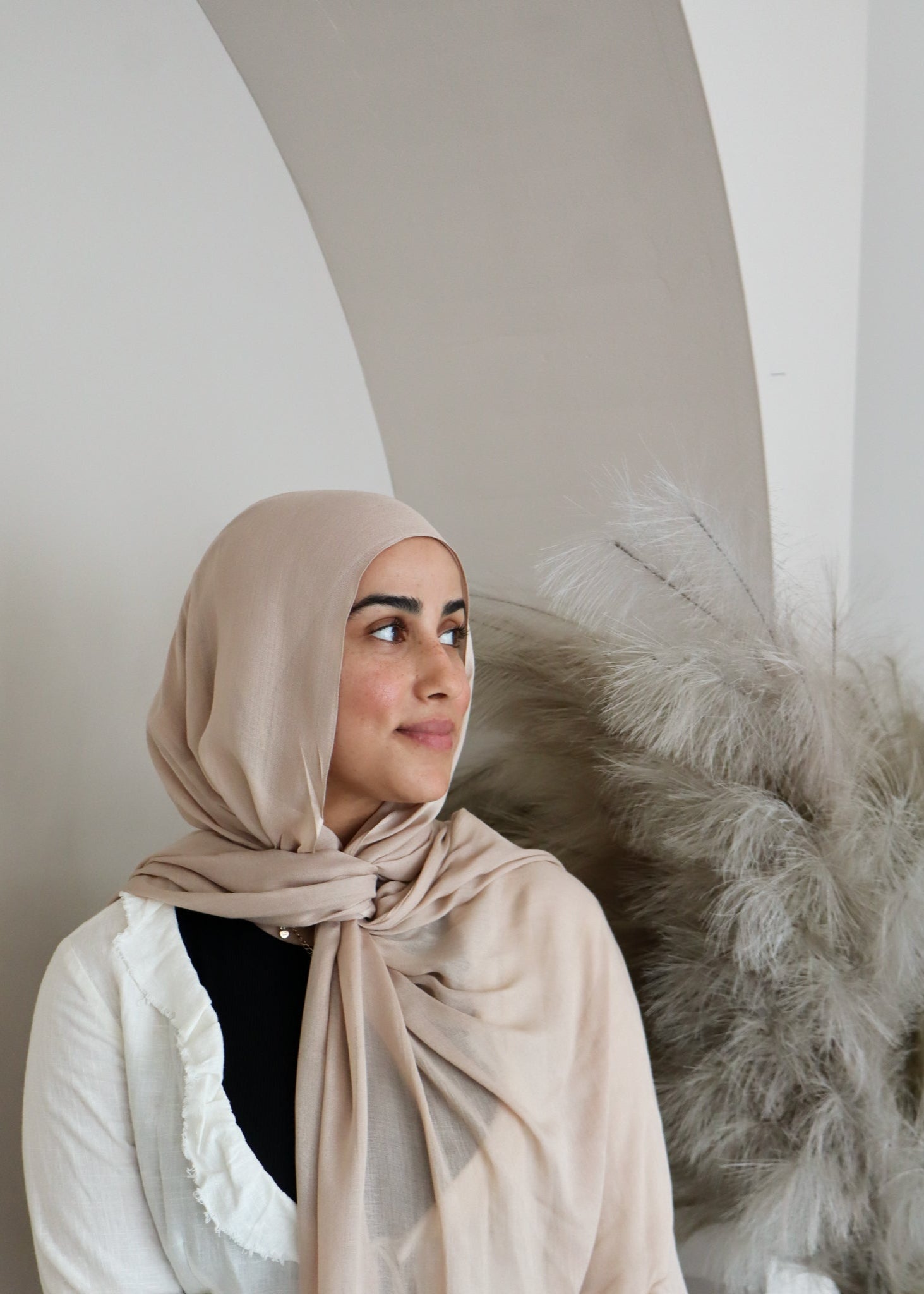 The Loula hijab is inspired by Maaloula, Syria — one of the oldest villages in the world. This warm beige shade reflects the ancient stone homes carved into the cliffs, capturing both the softness and strength of a place where tradition still echoes. Loula evokes sunlit stone, quiet faith, and the enduring spirit of a culture passed down through generations.